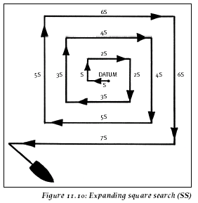 On the right the correct procedure for sailing vessels in order to expand a "man overboard" square search, starting from the "most probable position". A "search and rescue" technique. Yet you can use a similar approach when searching for a lost item, starting from the "most probable position" of your target. Use those same numbers... as centimeters.