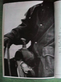 On the left page we have recognised a leather blazer, an arm and a gloved hand holding the reins of an unseen horse. We also have a saddle horn and a part of the neck of the animal.